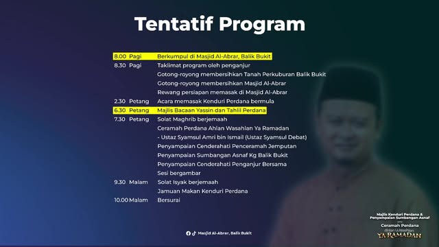 Majlis Ceramah Perdana Ahlan Wasahlan Ya Ramadan (Syamsul Debat) pada 13 Februari 2026 (Jumaat) Selepas Solat Fardhu Maghrib. Muslimin dan Muslimat Dijemput Hadir!